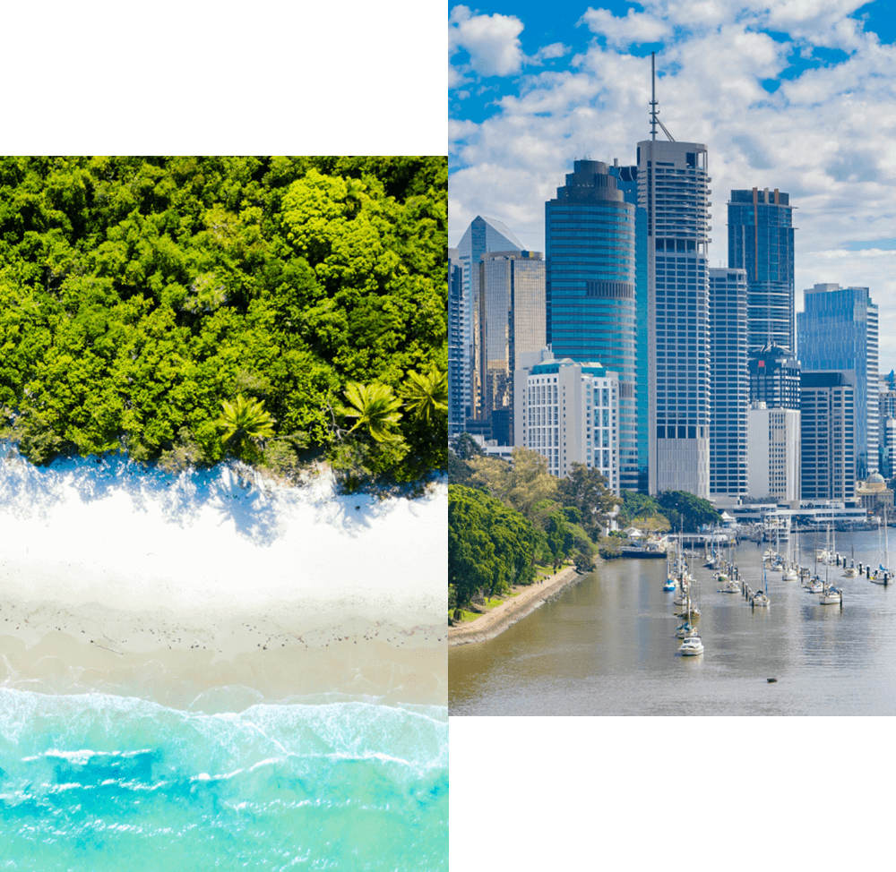 都心部には高層ビルや商業施設が立ち並ぶ一方で緑豊かな公園やリバーサイドウォークがある近代都市ブリスベン。